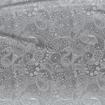 This Deluxe satin cotton duvet cover with elastic, inspired by Jaipur city, features elegant and unique paisley patterns, giving your interior an exceptional charm. The combination of gray and white colors creates peace and harmony in your bedroom, allowing you to immerse yourself in deep and comfortable sleep.