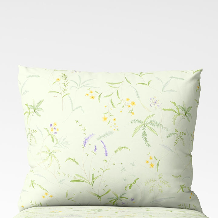 🌿 Meadow Whisper – lengvas pagalvės užvalkalas su pievų augalų piešiniu. Švelnios pastelinės spalvos ir natūrali kompozicija suteikia ramybės, idealiai tinka šviesiam, jaukiam miegamajam.