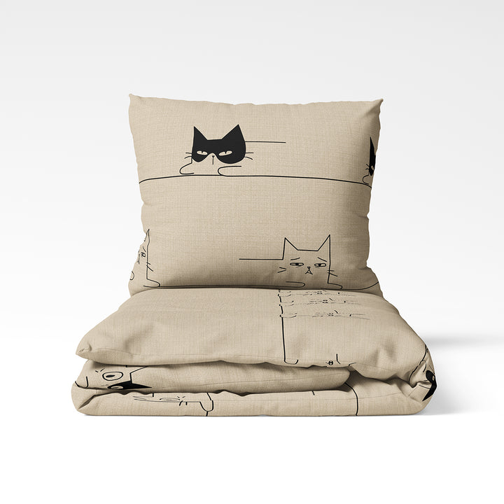 😺 Kitty – šmaikštus ir žaismingas dizainas, kuriame minimalistiniai katinų piešiniai suteikia interjerui šypsenos ir jaukumo. Smėlio fone išryškėjantys juodi kontūrai sukuria modernų, bet lengvabūdišką įspūdį. Puikus pasirinkimas tiems, kas mėgsta humorą ir originalumą net miegamajame.